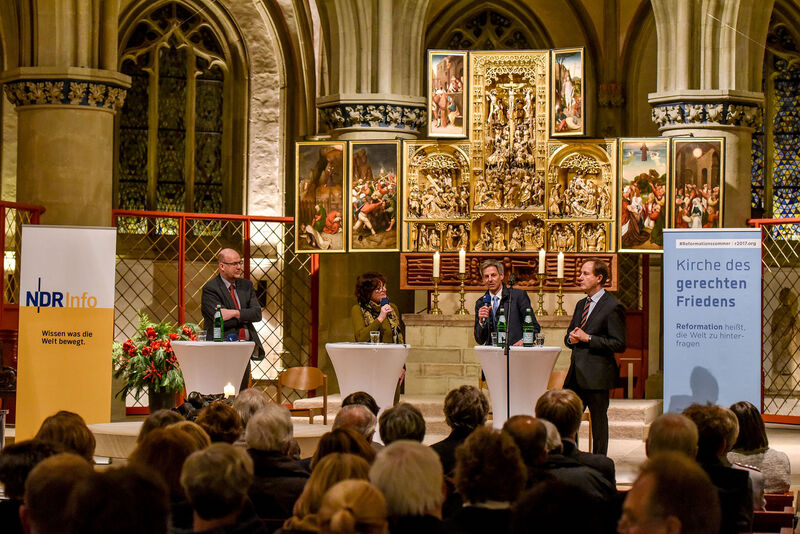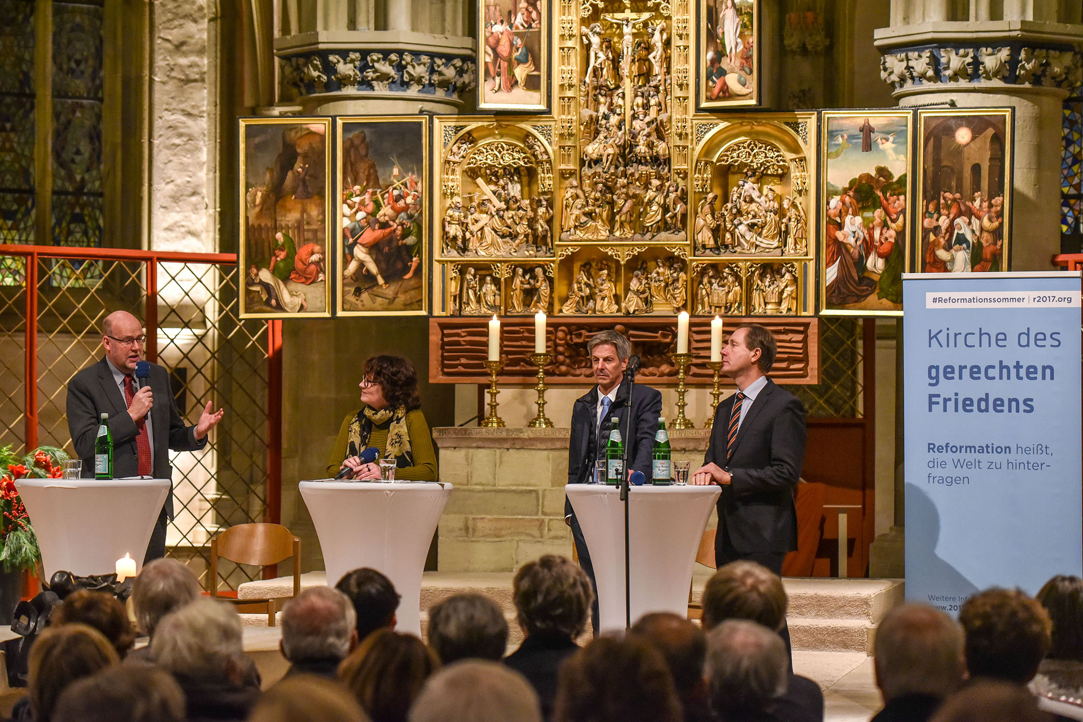 Der Friedensbeauftragte des Rates der Evangelischen Kirche in Deutschland (EKD), Renke Brahms, betonte, der Gewaltfreiheit müsse in jedem Fall Vorrang gegeben werden. Die Kirchen müssten in ihren Reihen aber unterschiedliche Schwerpunktsetzungen in dieser Frage zulassen. Im Übrigen habe in den kriegerischen Konflikten in Afghanistan, Syrien oder im Irak aber die internationale Politik versagt und nicht die kirchliche Friedensethik. Die Politik beantworte «Konflikte militärisch, die schon längst vorher anders hätten gelöst werden müssen und können».