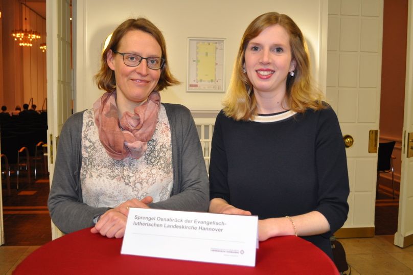 BU: Dr. Helga Kramer, Mentorin für Lehramtsstudierende der Evangelischen Theologie im Sprengel Osnabrück, mit Preisträgerin Constanze Kronisch. Foto: © Universität Osnabrück, Utz Lederbogen.