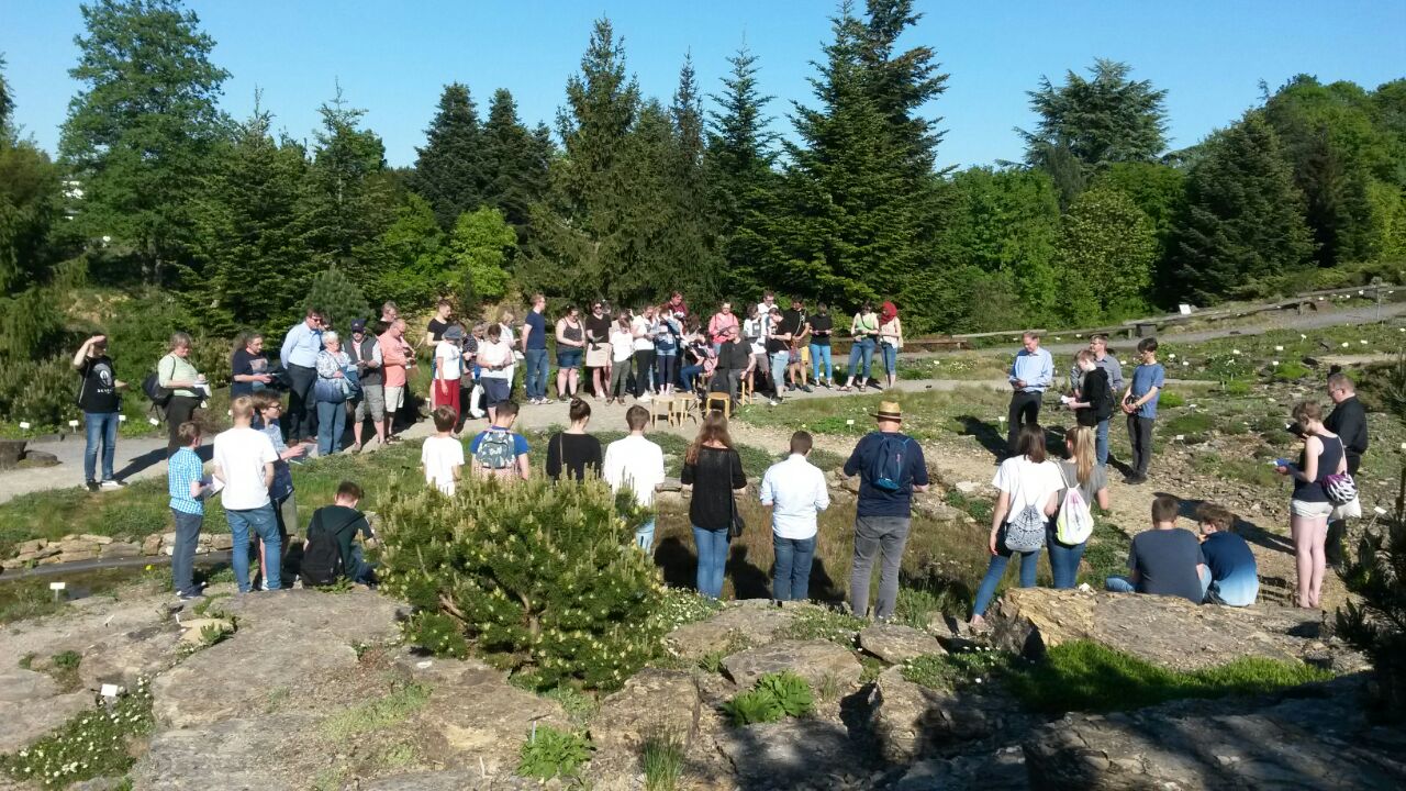 Seit einigen Jahren veranstaltet die Ev. Jugend Osnabrück einmal im Jahr einen Gottesdienst an einem ungewöhnlichen Ort. Diese Orte waren schon mal das VfL-Stadion, ein Supermarkt oder die Leitstelle der Feuerwehr. In diesem Jahr hatte die Evangelische Jugend am Sonntag, dem 6.Mai zu ihrem Gottesdienst in den Botanischen Garten eingeladen. Die besondere Lage des Botanischen Gartens in einem alten Steinbruch erlaubt es, die Vielfalt von weltweiten Pflanzengemeinschaften zu zeigen.