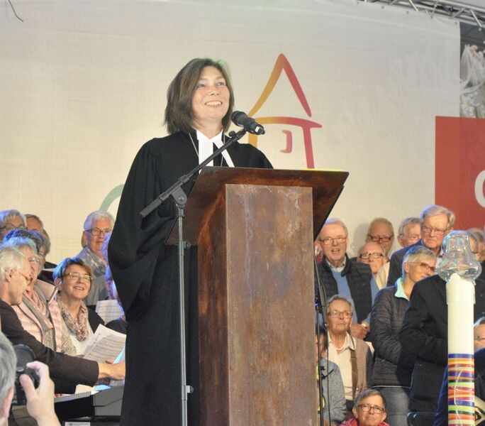 Über 2000 Gäste besuchten den Ökumenischer Gottesdienst am letzten Tag der Landesgartenschau in Bad Iburg. Die Predigt teilten sich Landessuperintendentin Dr. Birgit Klostermeier und Generalvikar Theo Paul. „Eine Menge ist hier in diesen Monaten sichtbar geworden, auf das Viele stolz sein können“, begann die Regionalbischöfin ihre Predigt und bezog sich damit auf das „bürgerschaftliche Engagement, auch gegen den politischen Willen, der ja zunächst mal vernünftig argumentiert hat.“ Und der jetzt sage: „Na, das ist ja richtig gut gegangen!“ Neben den Hauptverantwortlichen seien es auch die vielen Ehrenamtlichen gewesen, die die Landesgartenschau und die Kirche auf der LaGa so lebensnah und einladend gemacht hätten.