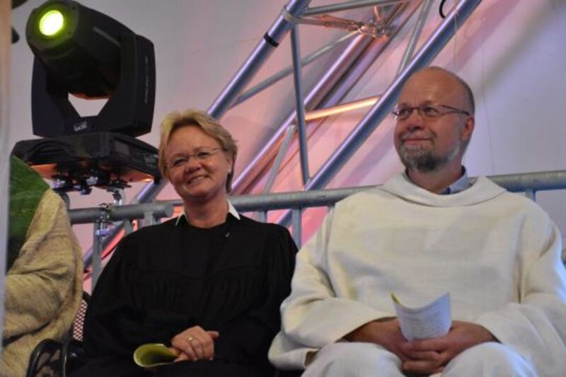 Sie betonte die Vielfalt der Besucher, der Themen, die religiöse und die christliche Vielfalt in der Waldkirche. „Ich glaube, lieber Generalvikar Paul, ein bisschen stolz sind wir schon darauf, dass unsere ökumenische Vielfalt hier so eindrücklich und erlebnisreich diesen Garten mit gestaltetet und ihm seine eigene Prägung gegeben hat“, wandte sich Klostermeier an ihren Kollegen vom Bistum. Das Motto „Farben des Lebens“ sei sichtbar geworden in „Gottesdiensten, Andachten, mit Chören, Gruppen, Predigern und Predigerinnen, plattdeutsch, hochdeutsch, laut und leise, lustig und launisch“. Ermöglicht hätte das das Engagement der vielen Ehrenamtlichen.