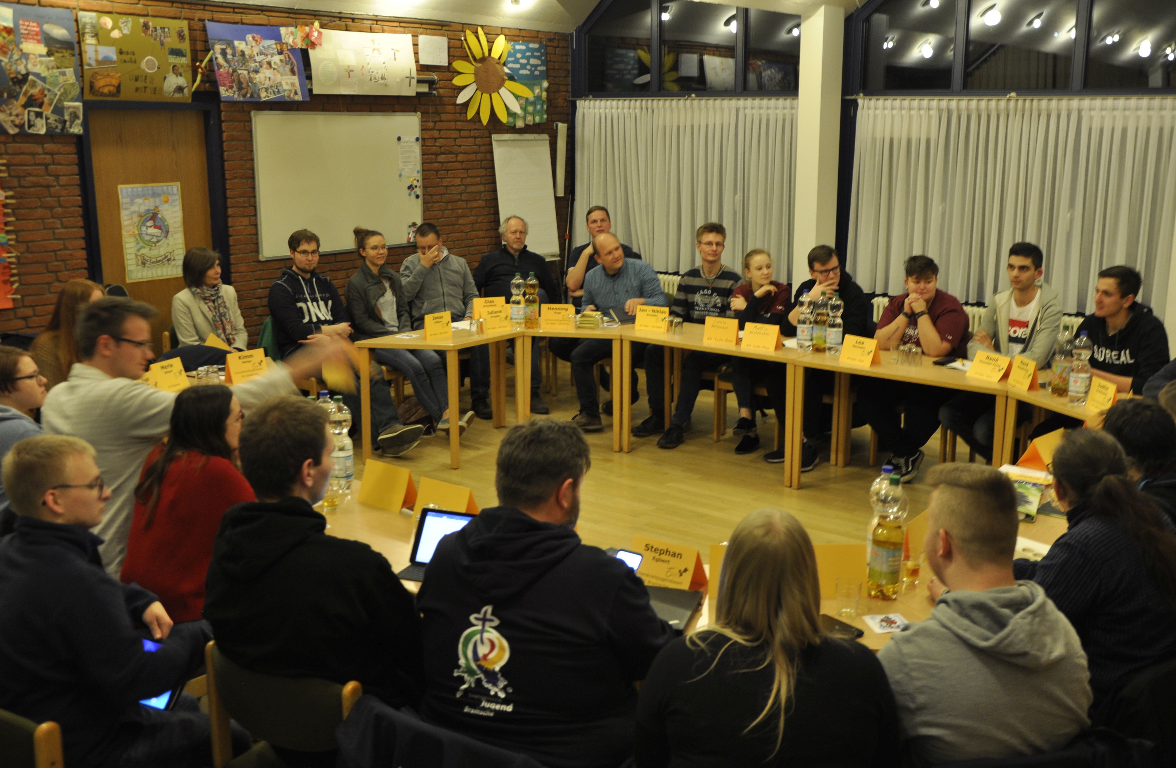 „Gutes und Gemeinsames“ hatte der Vorstand des Sprengeljugendkonvents auf die Tagesordnung des Treffens in der Thomasgemeinde in Osnabrück gesetzt. Und in der Sitzung im voll besetzten Gemeindesaal kam viel Gutes aus den Kirchenkreisen und Gremien auf den Tisch. „Wir wollen's wissen" fragt die Evangelische Jugend in einer Videoserie nach: Juleica, Kirchenamt und Kirchenkreistag werden vom Mediendienst der Evangelischen Jugend Bramsche anhand von Kurzfilmen erklärt (s.u.). Die Jugend aus Diepholz bringt ein „Best off“ der Liedersammlung im Kirchenkreis mit, das sie in einem neuen Liederheft zusammengestellt hat– mit viel Abstimmungsarbeit und geklärten Rechten. 2000 Stück sind gedruckt und stehen den Gemeinden für 2€ zur Verfügung. Im Kirchenkreis Melle/GMHütte testen die Jugendlichen einen gemeinsamen Instagram-Account zur Profilierung des Kirchenkreises. In Osnabrück ist die Jugend wieder bei der Durchführung des ökumenischen Kreuzweges im Kreuzgang am Dom beteiligt (8.3., 20.00h) und im Rahmen der „Zeit für Freiräume“ wird es für die Jugendlichen einen Oasentag geben. In Syke-Hoya engagieren sich die Jugendlichen für einen eigenen Raum und Laden-Ort, um Dinge tauschen und sich treffen zu können. Parallel laufen in den Kirchenkreisen Neuwahlen für die Vorstände, Gremien und Ausschüsse im Kirchenkreistag. Für alle Positionen gebe es genügend Kandidaten und die Jugend sei in allen Gremien vertreten, berichten übereinstimmend alle Kirchenkreisjugenddienste. Das sei ein gutes Zeichen und wichtig für die gegenseitige Rückenstärkung sagte Landessuperintendentin Klostermeier.
