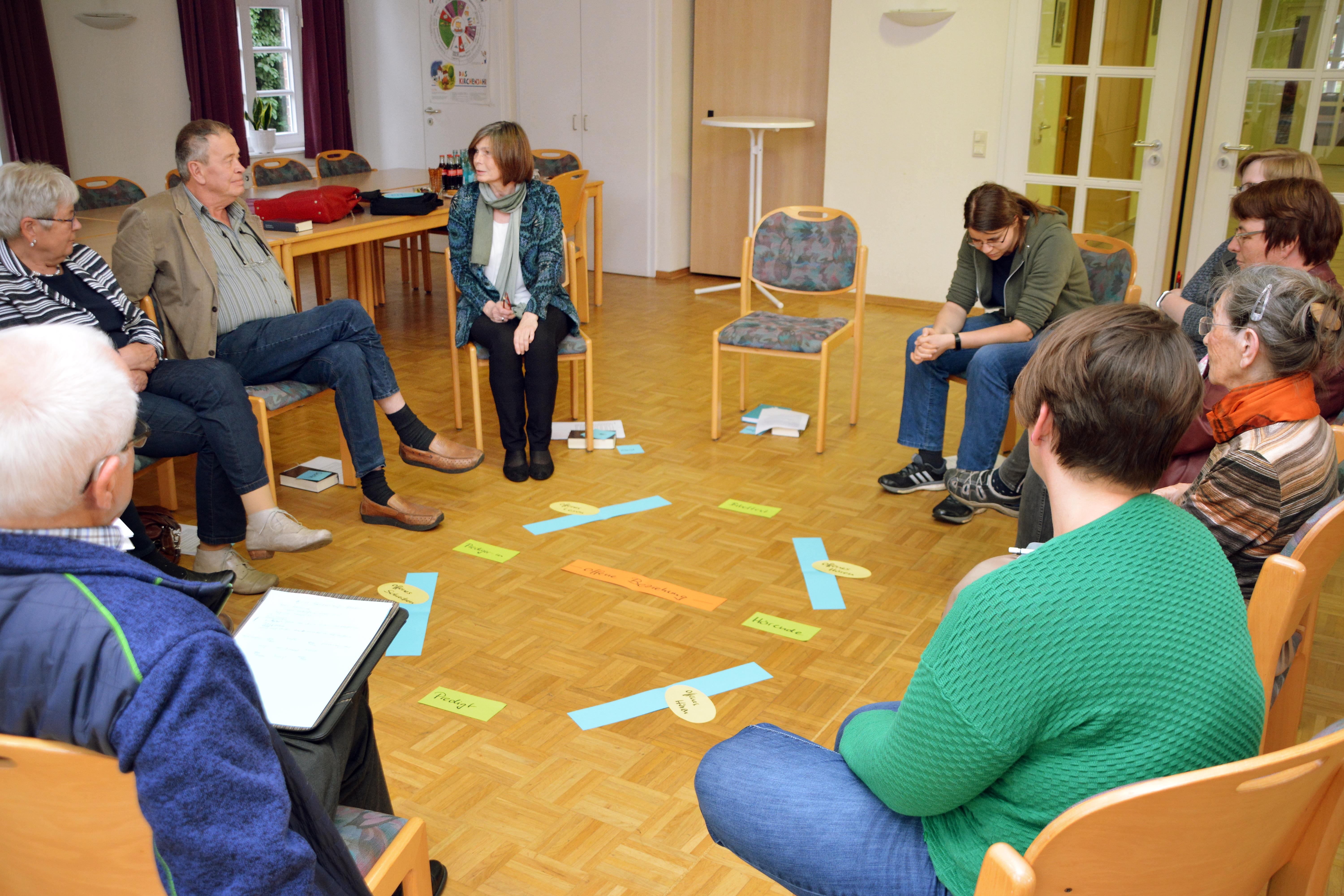 „Predigen als Freiraum“ war das Thema, zu dem Landessuperintendentin Dr. Birgit Klostermeier Lektorinnen und Lektoren sowie Prädikantinnen und Prädikanten des Sprengels Osnabrück eingeladen hatte. Der Gesprächsabend fand im Rahmen der "Zeit für Freiräume" im Gemeindehaus in Rehden, Kirchenkreis Diepholz, statt. Bei praktischen Übungen wurde für die Teilnehmerinnen und Teilnehmer sehr gut nachvollziehbar, wie unterschiedlich Worte, Sätze und Texte von den Lesenden und Hörenden verstanden und interpretiert werden können. Das gilt besonders auch für Bibeltexte und Predigten. Für das Verständnis leitend sind dabei die eigenen Vorkenntnisse und Erfahrungen sowie die individuelle Lebenssituation, in der sich die Menschen befinden. Auch die Auswahl der Textstelle spielt eine entscheidende Rolle, wie die Gruppe anhand der "Geschichte des sinkenden Petrus" verblüffft feststellte. Die Geschichte wirkt völlig anders, wenn sie nicht bis zum Schluss, sondern nur bis zum drohenden Untergang des Petrus gelesen wird. Ohne den Schluss, in dem die Rettung des Petrus durch Jesus geschildert wird, erhält der Text eine gewisse Offenheit. Fragen und Probleme, die zuvor für den Lesenden nicht ans Licht kamen, treten plötzlich hervor und können für eine Predigt nutzbar gemacht werden.