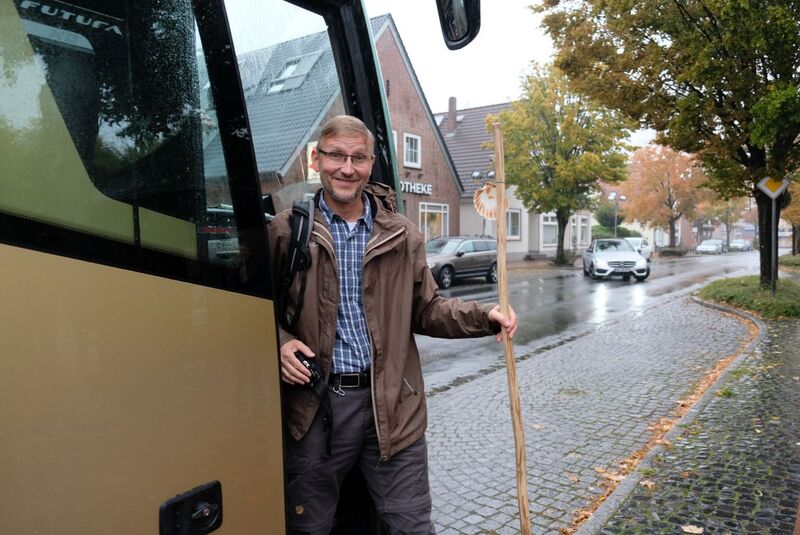 „Pastorinnen und Pastoren gehen“ stand auf der Einladung und dem Pilgerbüchlein das die gut 40 Pilgernden, darunter auch Landesbischof Ralf Meister am Startpunkt in der Christuskirche in Harpstedt erhielten. Tagesablauf, Impulse, Lieder und Platz für eigene Gedanken fanden sich darin. Gepilgert wurde 14 Kilometer auf der Via Baltica, die durch den Sprengel führt. „Pastorin zu sein, Pastor zu sein ist Gottesdienst. Pilgern auch, “ so die Regionalbischöfin. Auf dem Zubringer zum Jakobsweg gingen Pastorinnen und Pastoren dieser Idee nach. Für sich, miteinander im Austausch, im eigenen Rhythmus. Fünf thematische Impulse unterbrachen an sorgfältig ausgewählten Orten die Wanderung. „Besonders genossen habe ich den Abschnitt, den wir schweigend zurückgelegt haben“, war das Fazit vieler. „Es war eindrücklich, wie sich die Wahrnehmung schärfte, nicht nur für die Natur, auch füreinander.“ Nach Zweidrittel der Strecke wartete der Bus mit frischem Kaffee, kleiner Stärkung und dem Angebot, Müde mit zum Zielort zu nehmen. „Die Streckenabschnitte waren wunderbar gewählt, ein sehr gelungener Tag, an dem alles wie selbstverständlich wirkte." Unter einem Apfelbaum versammelten sich die Pilgernden zum letzten Impuls auf der Strecke: "Du stellst meine Füße auf weiten Raum", das war nach dem Schweigen die Einladung zum Gespräch auf der letzten Etappe. "Ich habe mich gerne führen lassen und fühlte mich gut versorgt, in allen Dimensionen“, fasste ein Teilnehmer die Atmosphäre unterwegs zusammen. Normalerweise sei das mit dem „versorgen“ ja andersherum. „Eine tolle Möglichkeit, den Tag mal anders zu verbringen“, war das oft gehörte Feedback.