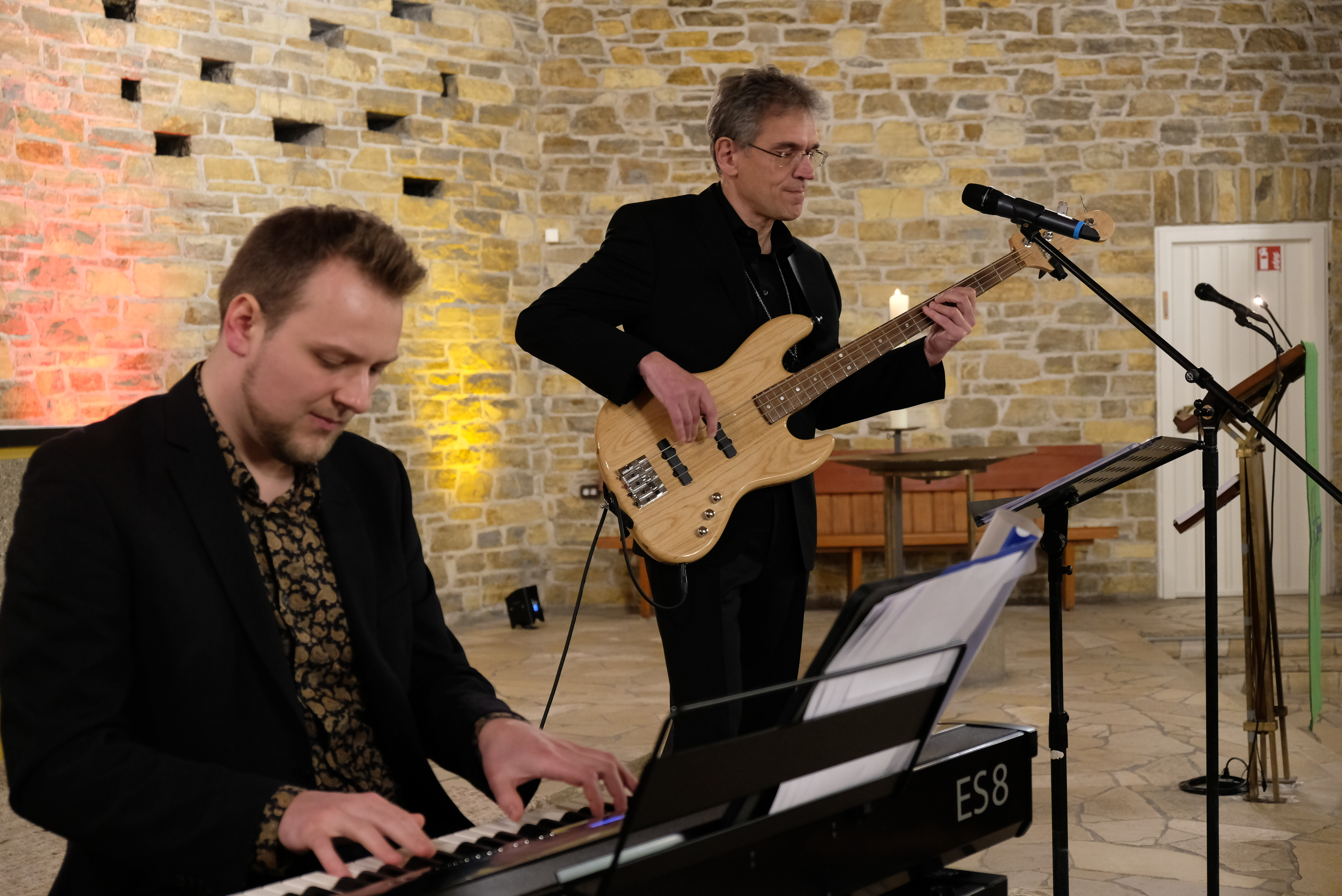 Die Evangelisch-lutherische Nordwestgemeinde lädt am Sonntag, 5. November, um 18 Uhr zu einem Jazz-Gottesdienst in die Markuskirche, Julius-Heywinkel-Weg 2, 49076 Osnabrück, ein. Den Gottesdienst gestalten Jazzpianist Max Westkemper und Regionalbischof Friedrich Selter, der den Bass spielt und die Predigt hält. Seit seiner Jugend liebt Selter Jazz: „Die Musik passt für mich so gut für Gottesdienste, weil sie von überlieferten Melodien lebt, die frei und immer wieder neu interpretiert werden. Genauso leben Gottesdienste von überlieferten, biblischen Texten, die immer wieder neu für die jeweilige Situation ausgelegt werden“, sagt der Regionalbischof des Sprengels Osnabrück. Bereits vor zwei Jahren haben Max Westkemper und Friedrich Selter einem Jazz-Gottesdienst in der Markuskirche gehalten. „Ich freue mich, wieder mit Max Westkemper zusammenarbeiten zu dürfen. Er ist ein unglaublich versierter junger Jazzpianist“, so Selter.