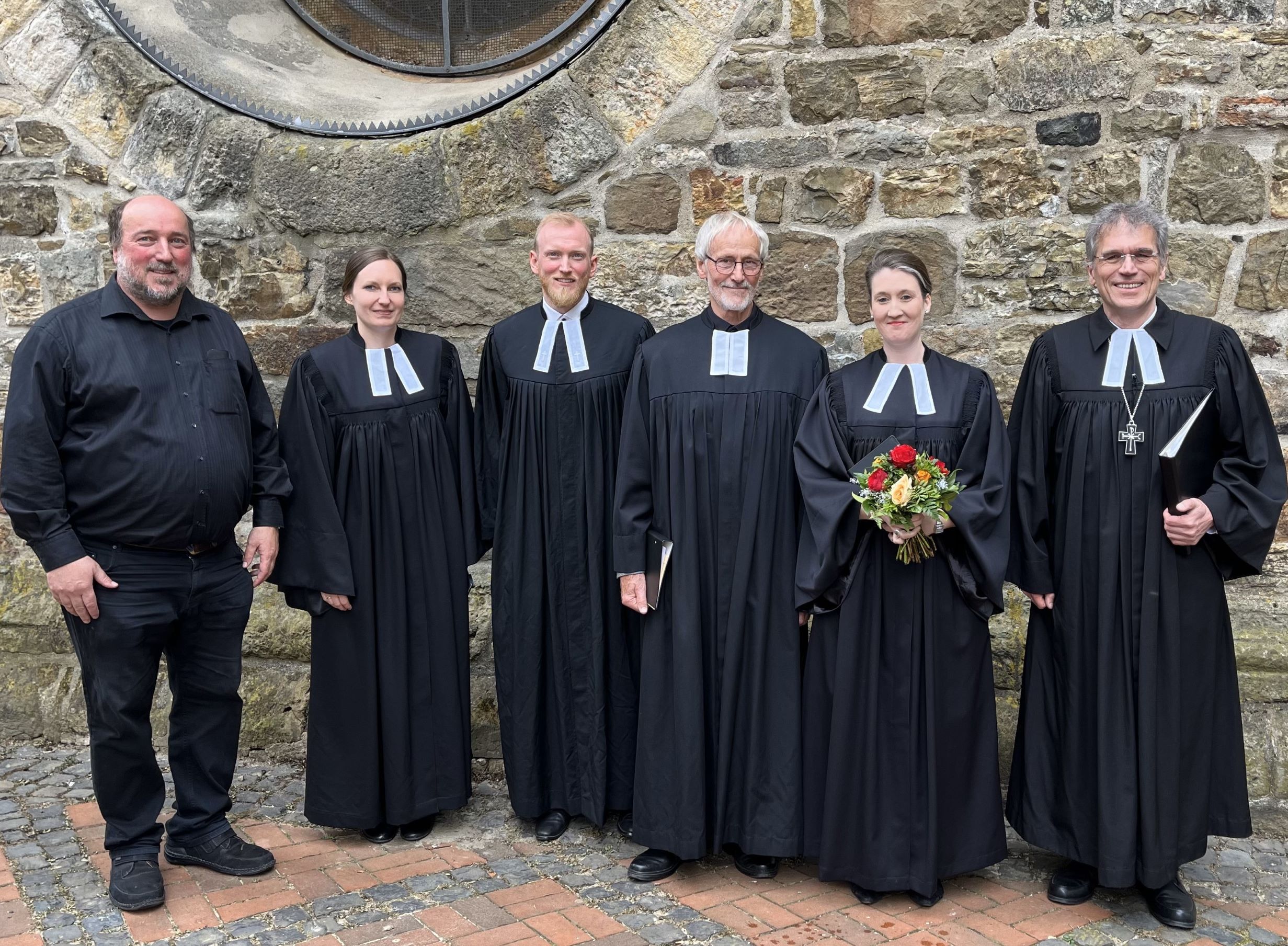 Assistent*innen bei der Ordination von Laura Schimmelpfennig sind Pastorin Anika Bolowski aus St. Michaelisdonn, eine gute Freundin und Vikariats-Gefährtin, Pastor i.R. Gottfried Ostermeier, ehem. Pastor an St. Marien Osnabrück und Mentor seit der Jugend über Studium und Vikariat hindurch, Pastor Christian Steinmeier aus Mandelsloh, ein guter Freund und ehemaliger Hilfskraft-Kollege an der Uni in Göttingen, und Johannes Wasmuth, Küster an St. Martin und Bramscher Urgestein.