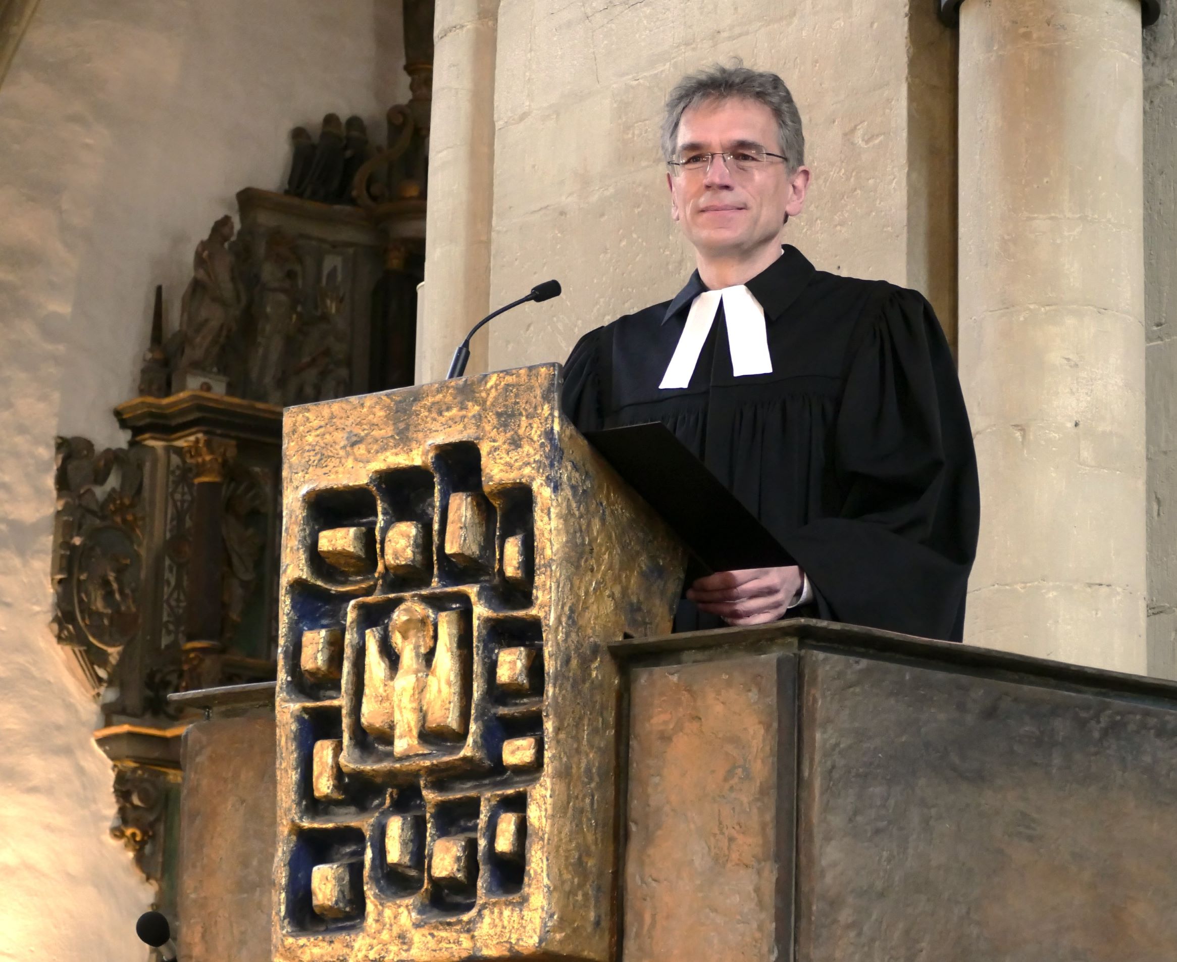 "Nehmt wahr, was die Stadt an Gutem für Euch bereithält. Und andersherum: Bringt Euch ein, damit es der Stadt gut geht. Seid ein Segen für die Stadt. Diese Weisung münzen wir auch auf uns als Kirchen,“ erinnerte der Regionalbischof zunächst mit Blick auf die 700-jährige Geschichte von St. Marien anhand einiger Beispiele. St. Marien wurde als Bürgerkirche, nicht als Stiftskirche gebaut, ihre Lage am Markt, bewusst in unmittelbarer Nähe zum Rathaus. Spätestens nach der Einführung der Reformation im Jahre 1543 sicherte sich der Rat der Stadt das Recht der Pfarrstellenbesetzung, er schuf somit ein Gegengewicht zur Macht des Domkapitels. Und umgekehrt wurde der jeweils neue Rat mit einem festlichen Gottesdienst in St. Marien eingeführt.