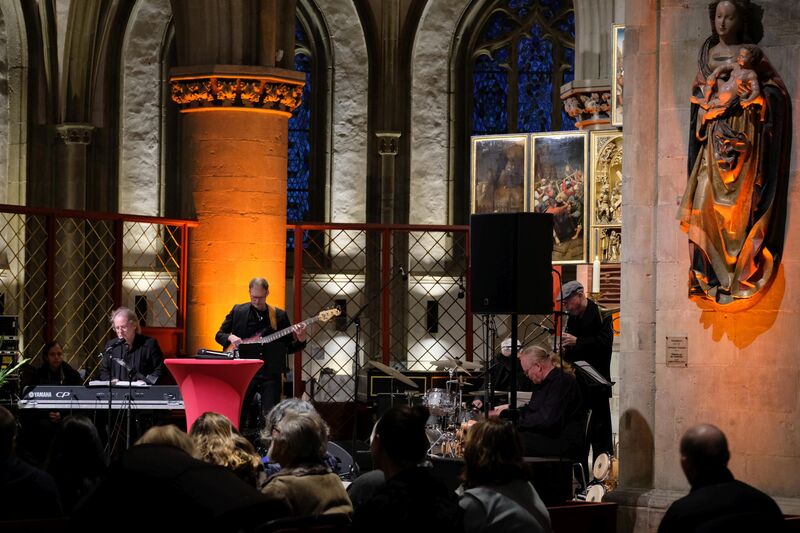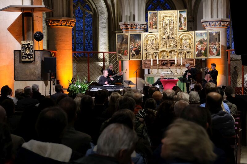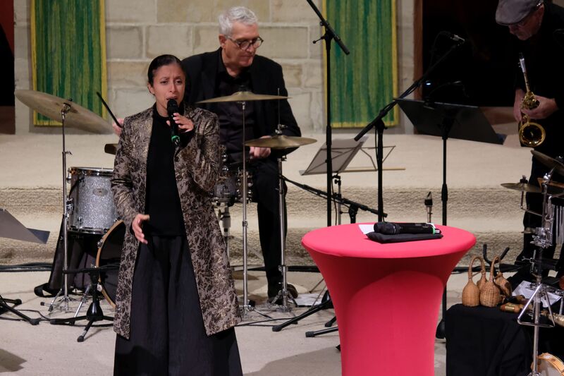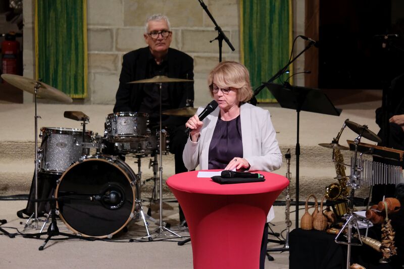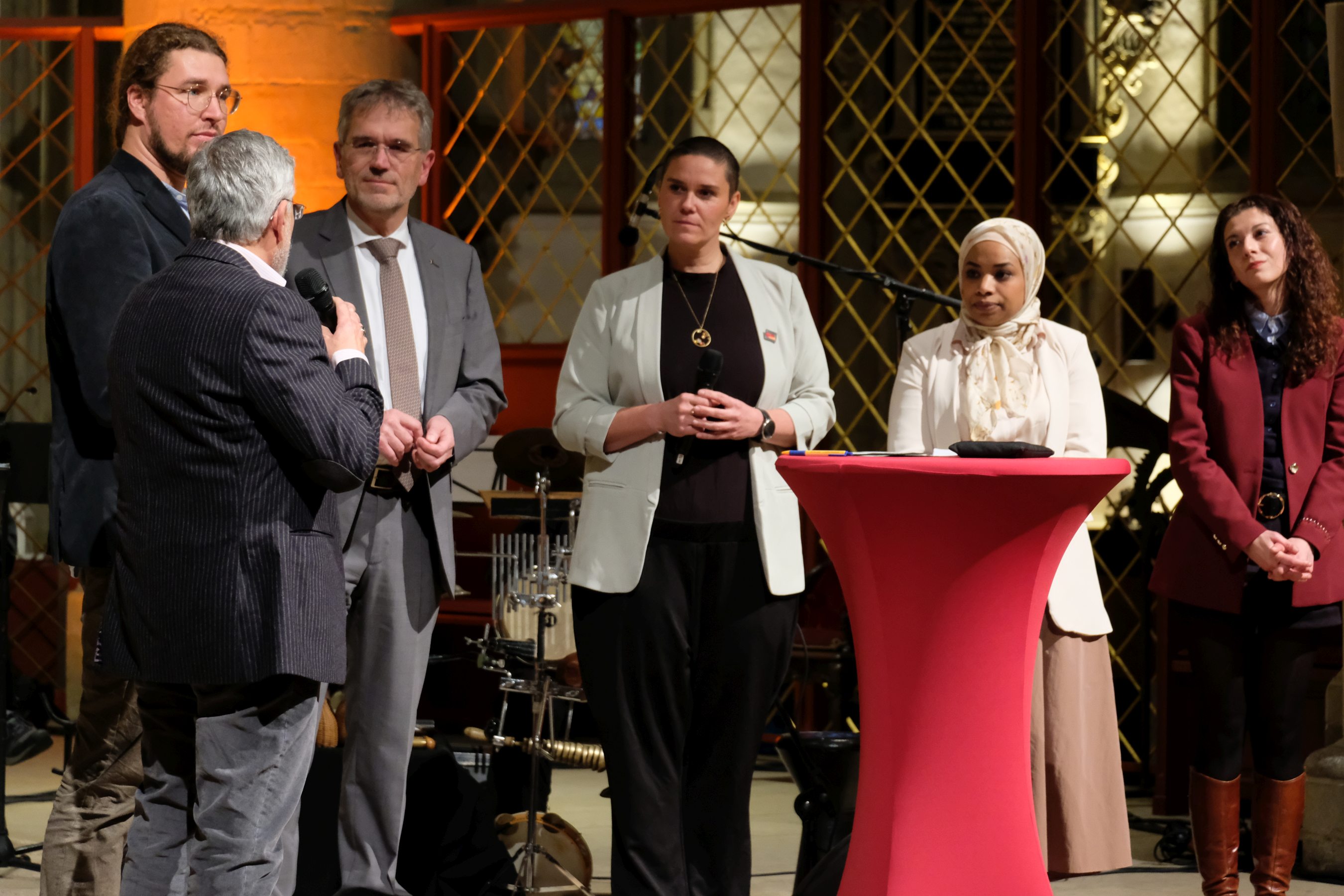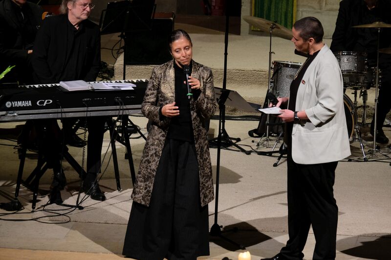 Musikalisch gestaltete die Formation Ufermann – Musik für Kulturen den Abend. Ihre Beiträge verbanden Klänge und Traditionen verschiedener Kulturen. Die Sängerin Hayat Chaoui berührte mit Ihrer Stimme und Präsenz vor allem beim Vortrag des Liedes „Verleih uns Frieden gnädiglich“. Sie ist Dozentin an der Hochschule für Musik in Osnabrück und gilt als Expertin für interkulturelle Musikpädagogik.
