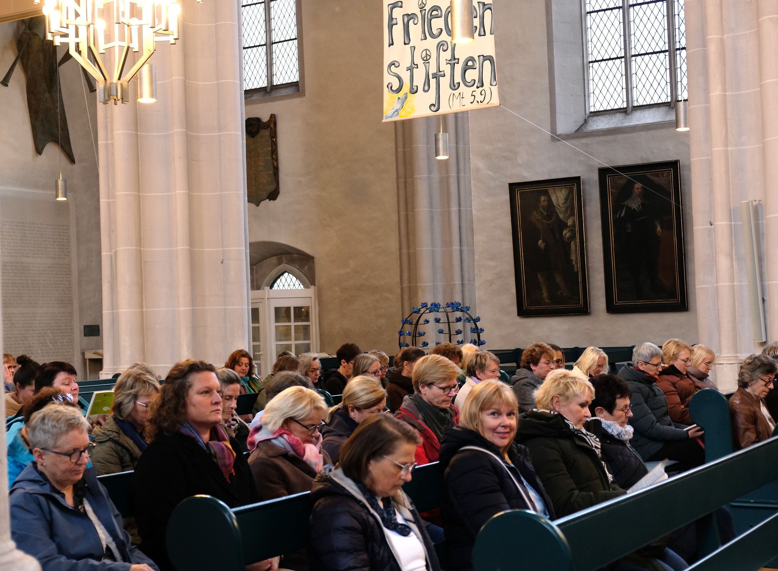 Alles gute Gründe, ihnen einen eigenen Tag zu widmen. Das tat der Regionalbischof und lud die Pfarrsekretärinnen am 11. November in die St.-Katharinenkirche Osnabrück und das Gemeindehaus "Steinwerk" ein. Anlass sei seine Erfahrung bei der Ordination eines Pastors nach langer Vakanz gewesen, so Selter bei der Begrüßung der fast 60 Pfarr- und Ephoralsekretärinnen: „Ich habe allen gedankt, die diese Zeit überbrückt haben – außer der Gemeindesekretärin. Sie kam im Anschluss auf mich zu und machte mich auf diesen blinden Fleck aufmerksam und dafür bin ich ihr wirklich dankbar. Deshalb haben wir heute einen Tag gestaltet, an dem einmal alles für Sie vorbereitet ist“. Es solle ein Tag sein „zum Austausch, zu konstruktiver Unterstützung, mit Zeit zur Reflexion und zum gemeinsamen Singen mit Popkantor Jens Niemann“.