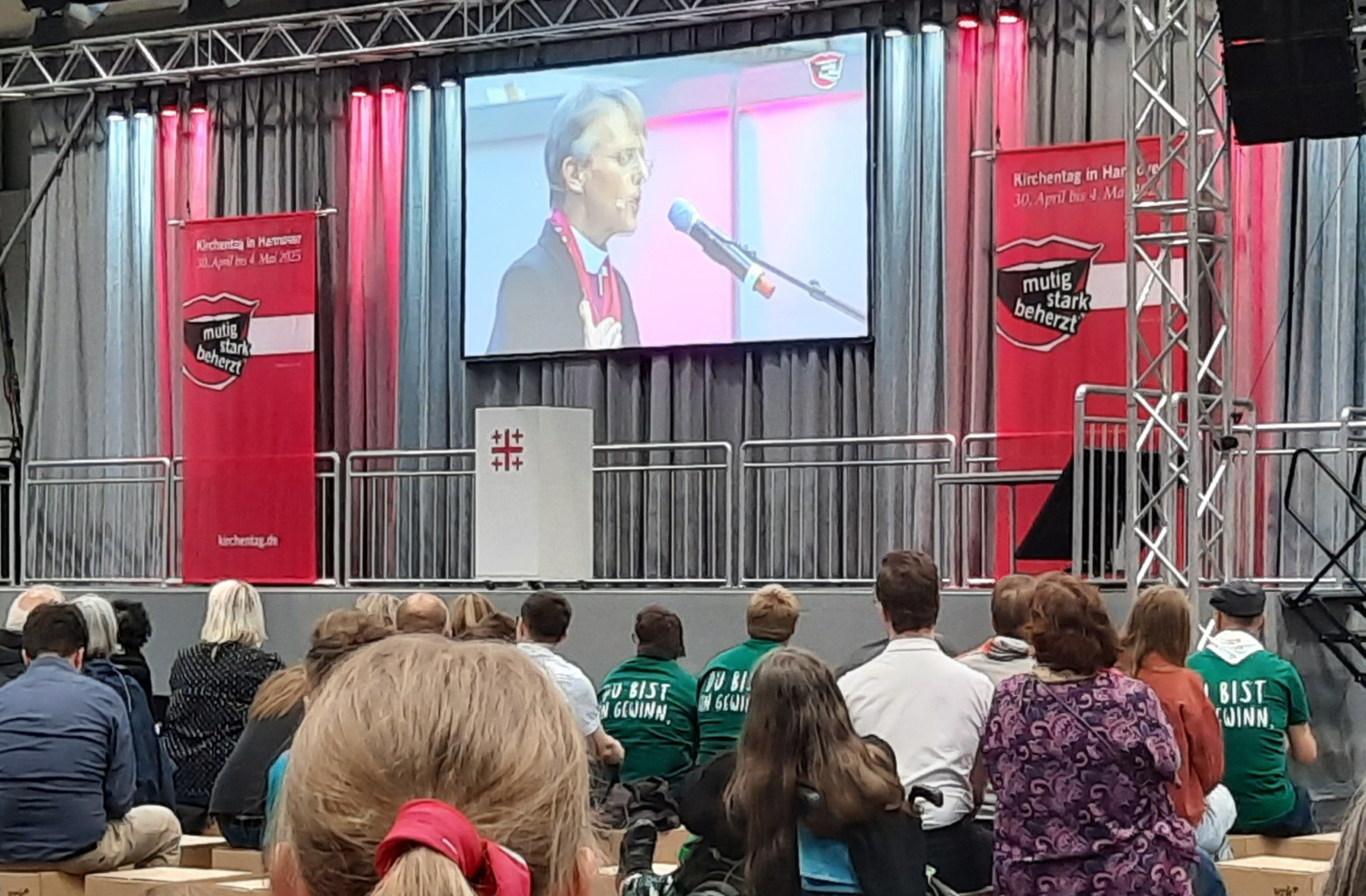 Wir vermissen im NOZ-Artikel viele weitere Worte. Es fällt kein Wort zu der Washingtoner Bischöfin Mariann Edgar Budde, die in ihrer Predigt am Tag nach der Amtseinführung von Donald Trump den anwesenden US-Präsidenten dazu aufrief, Erbarmen und Mitgefühl mit den Schwächsten zu zeigen, und die auf dem Kirchentag in Hannover dazu aufrief, dass Hoffnungslosigkeit angesichts der Situation in den USA, „einem Land außer Kontrolle“, keine Option sei. Kein Wort davon, dass christlicher Glaube sehr wohl politisch sei, wie es Kirchentagspräsidentin Anja Siegesmund beim Abschlussgottesdienst betonte, und dass man sich einmische, jeden Tag, auf der Grundlage des Evangeliums. Kein Wort von der Kirchentags-Resolution für ein AfD-Verbot und dass es der evangelischen Kirche um Abgrenzung von rechtsextremistischen Positionen geht und nicht um Ausgrenzung von Menschen. Kein Wort dazu, dass bei dem Workshop „Werde mutig und stark“ ein geschützter Raum für Kinder geschaffen wurde, damit sie von ihren eigenen Erfahrungen mit Rassismus berichten und Strategien für den Umgang damit entwickeln konnten. Diese und viele weitere, wichtige Themen wurden während des Kirchentages behandelt.